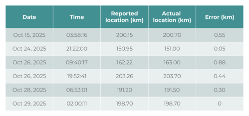 The theft occurred on a looped section of the pipeline. Atmos Wave estimated the theft location within 600m of the confirmed field location (see Figure 1), demonstrating strong location accuracy on a complex, long distance pipeline.