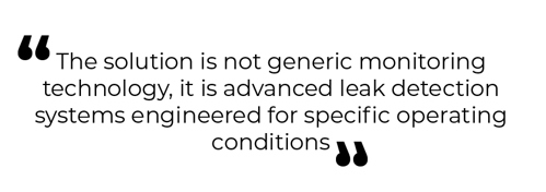 The solution is not generic monitoring technology. It is advanced leak detection systems that are tuned to specific operating conditions, supported by robust communications and instrumentation and delivered as integrated solutions.
