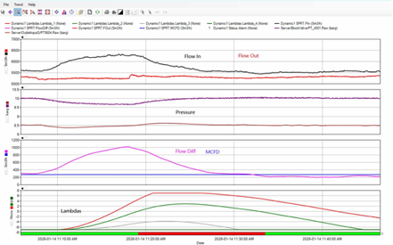 In Asia, a hydrogen pipeline successfully completed site acceptance testing, with two real leaks introduced and detected within expected timeframes by Atmos Pipe. The system demonstrated high sensitivity, identifying leak behavior at less than one percent of flow rate (see Figure 3), reinforcing its suitability for hydrogen applications.