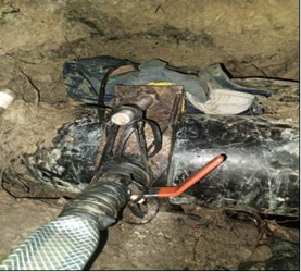 Excavation of the site revealed the tapping point, along with the physical connection to the pipeline and supporting infrastructure used to conceal the operation (see Figure 5).