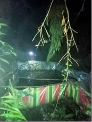 Figure 5: Excavation revealing a tunnel leading to the illegal tapping location (left), a close up of the illegal tapping connection (middle) and surface structure used to support and conceal the theft operation (right)